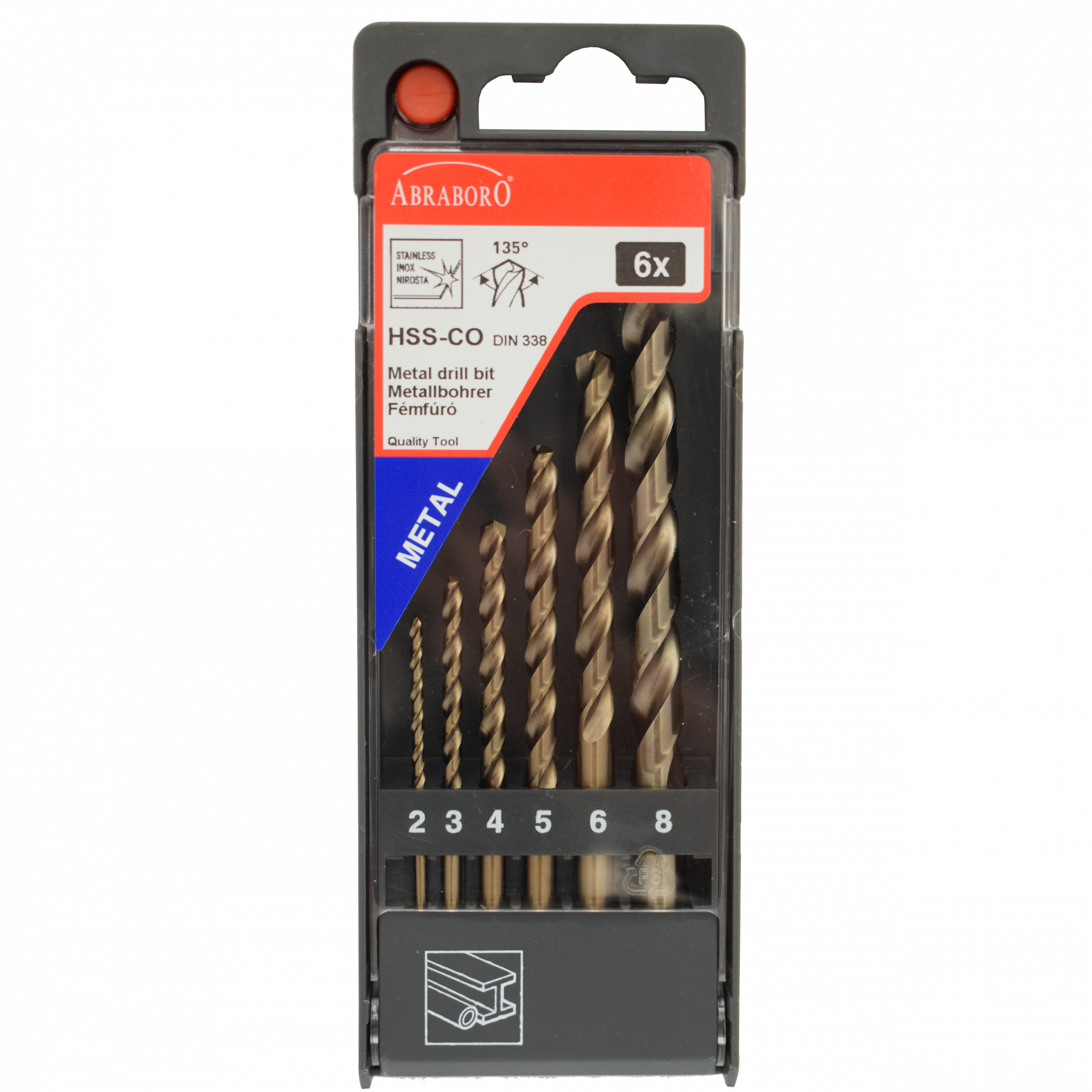 Abraboro HSS-Co 6 részes fémfúró készlet, műanyag dobozban