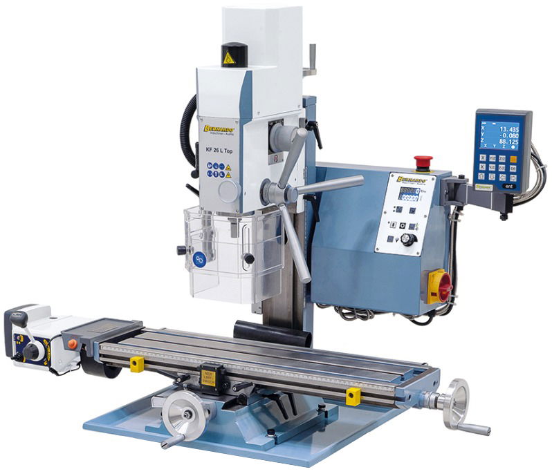 - Fokozatmentes maróasztal-előretolással és DT 40 3-tengelyes digitális kijelzővel.